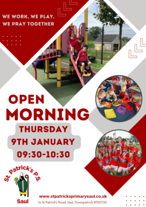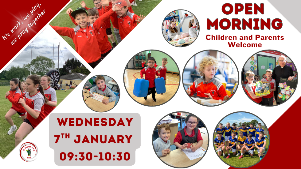 Our Open Morning is on Wednesday 7th January 2026 from 9:30-10:30am. We invite parents and prospective P1 children along to experience a little of what St Patrick's has to offer.