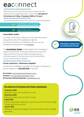 Online applications will open at 12 noon on Wednesday 7 January 2026 and will close at 12 noon on Wednesday 21 January 2026.